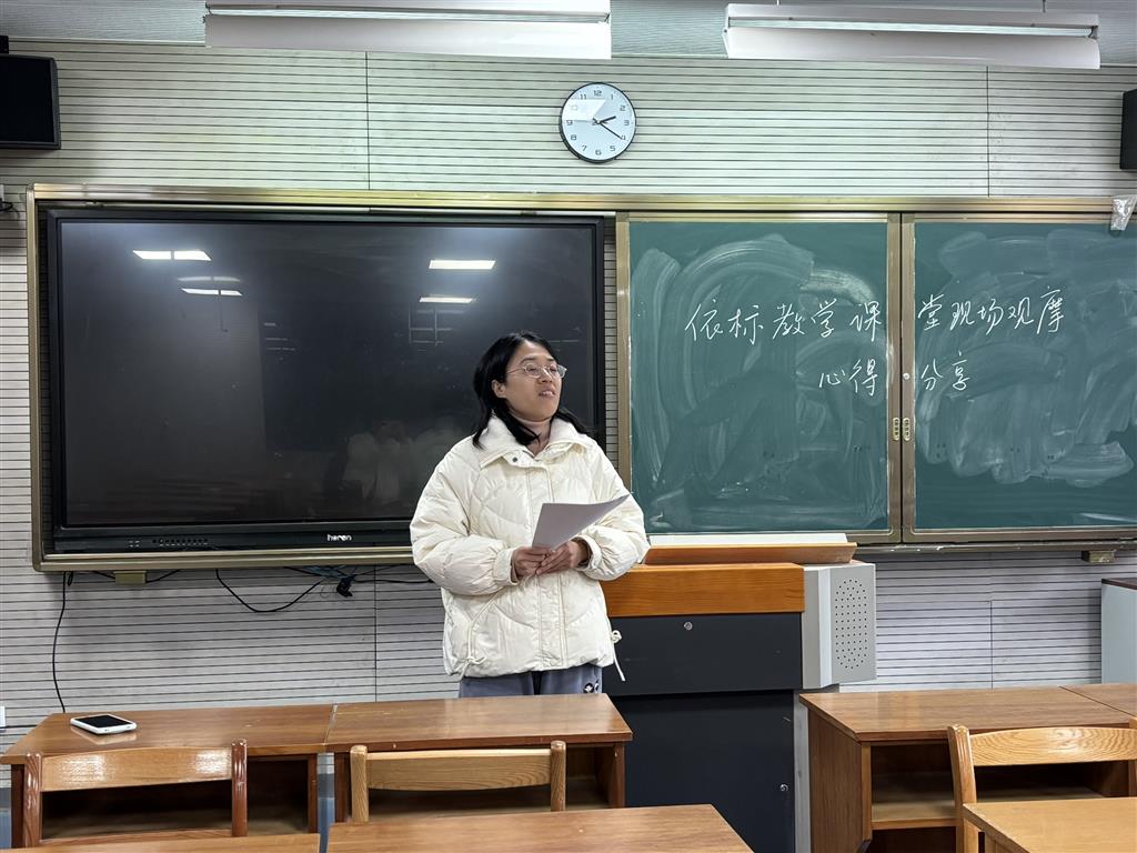 2025年12月4日下午第二课,大蕉久久伊人中文字幕语文组开展青年教师成长营活动。钟雨辰老师和成长营的老师交流分享了“依标教学”课堂现场观摩的心得感悟。